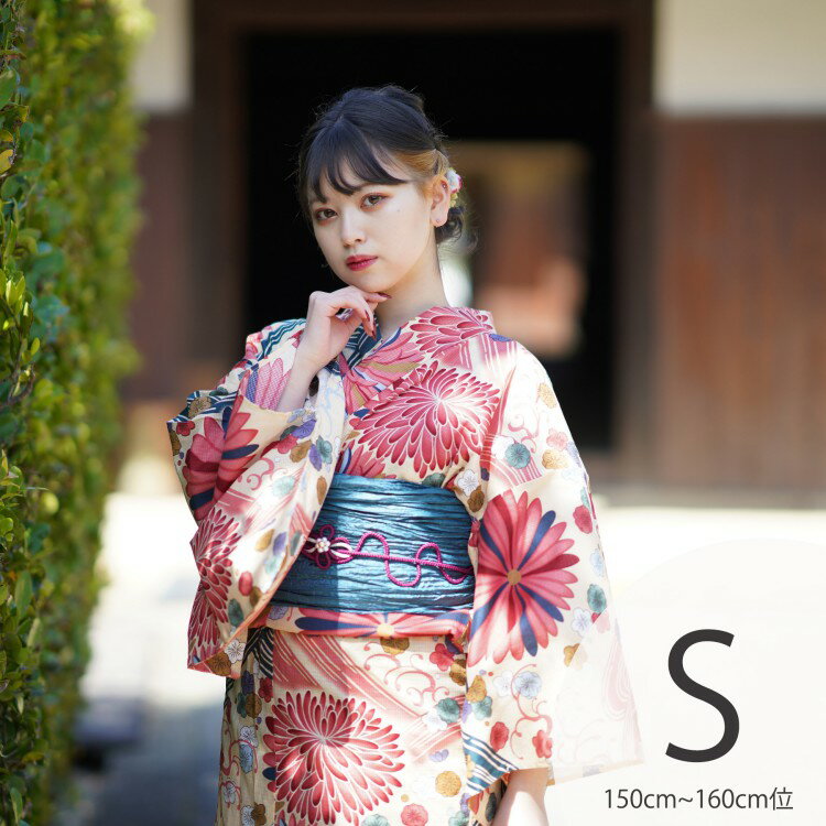浴衣 セット レディース 浴衣 3点セット(浴衣/帯/下駄)Sサイズ 小さいサイズ 150cm〜160cm日本製生地 国内染色 和歌山染工 ピンクベージュ 黄色 赤 緑 グレー イエロー レッド アネモネ 菊 昭和アンティーク復刻 浴衣セット ゆかた 女性