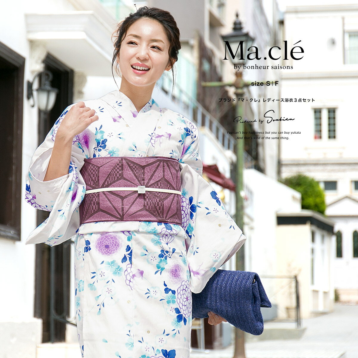 【4/23~28★クーポンで最大1000円OFF】浴衣 セット レディース レトロ 浴衣セット 3点セット 白系 ホワイト ベージュ 菊 金魚 撫子 綿 ラメ 半幅帯 女性 ボヌールセゾン マクレ 30代 40代 ママ 大人浴衣 S フリー 【送料無料】【あす楽対応】【母の日】