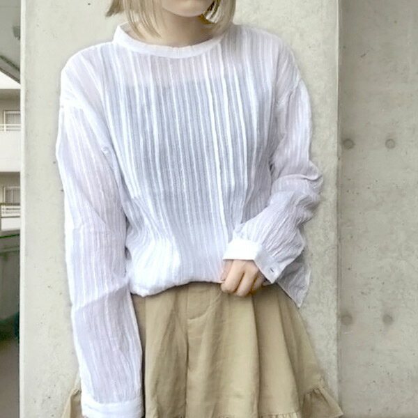 あす楽対応 トップス ホワイト 白 細身 韓国風 S M L カジュアル 透け感 秋冬 20代30代40代 レディース 秋 冬 長袖