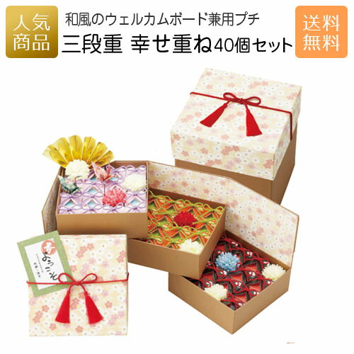 三段重 40個セット|ウェルカムオブジェ A12-801 A12-802 幸せ重ね 喜び重ね 名入れ プチギフト ウェルカムボード オリジナル 結婚式 2次会 お菓子 ゆず昆布 抹茶クッキー 金平糖 おしゃれ おもしろい 和風 和柄 割引き ギフト