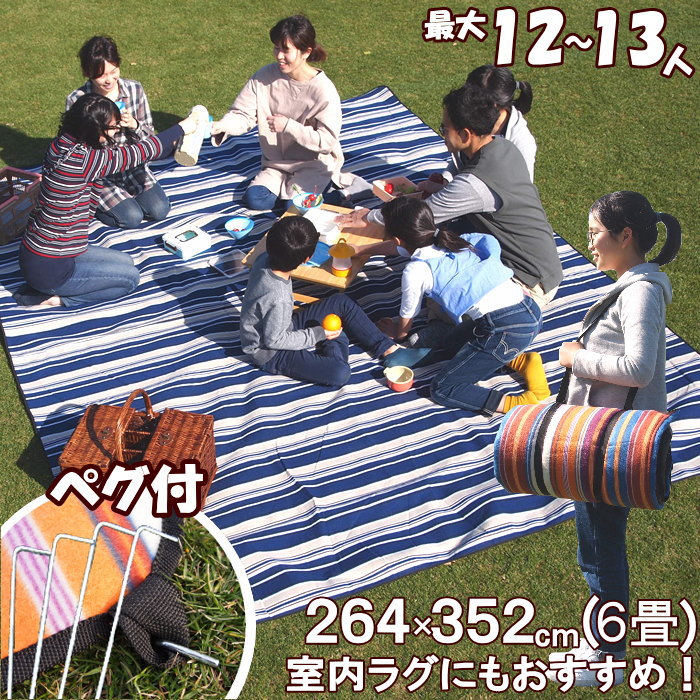 [即出荷] [サントリーニボーダー 264×352(6畳)] レジャーシート 大きい 厚手 ペグ付き 留め具付き 6畳 大判 運動会 お花見 洗える 8人〜13人 ラグ レジャーマット ピクニックシート クッション 折りたたみ おしゃれ ショルダー【ネコポス便不可】【送料無料】【あす楽対応】