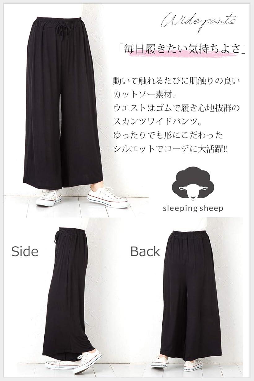 スリーピングシープ ゆったり やわらか エアリー パンツ ワイドパンツ ガウチョ コットン ボトム レディース(マスタード, ロング)